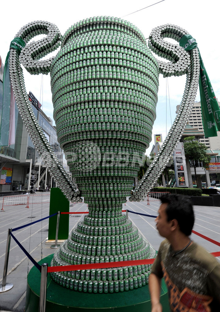スポーツ サッカー こぼれ話 特大の欧州CL優勝トロフィーがバンコクに登場 2008年5月14日 11:39 発信地:バンコク/タイ [ アジア・オセアニア タイ ] このニュースをシェア ‹ › ❮ 1/3 ❯ バンコク市内に登場したビール缶で作られた欧州チャンピオンズリーグの特大優勝トロフィー。(2008年5月13日撮影)(c)AFP/PORNCHAI KITTIWONGSAKUL 画像作成中 ! 【5月14日 AFP】サッカー欧州チャンピオンズリーグ2007-08(UEFA Champions League 2007-08)決勝を5月21日に控え、バンコク(Bangkok)市内のショッピングモールに5000個のビール缶で作られた特大の優勝トロフィーが登場した。決勝はモスクワで行われマンチェスター・ユナイテッド(Manchester United)とチェルシー(Chelsea)が対戦する。(c)AFP サッカー 一覧へ> メディア・報道関係・法人の方向け 写真・動画 購入のお問合せ>
