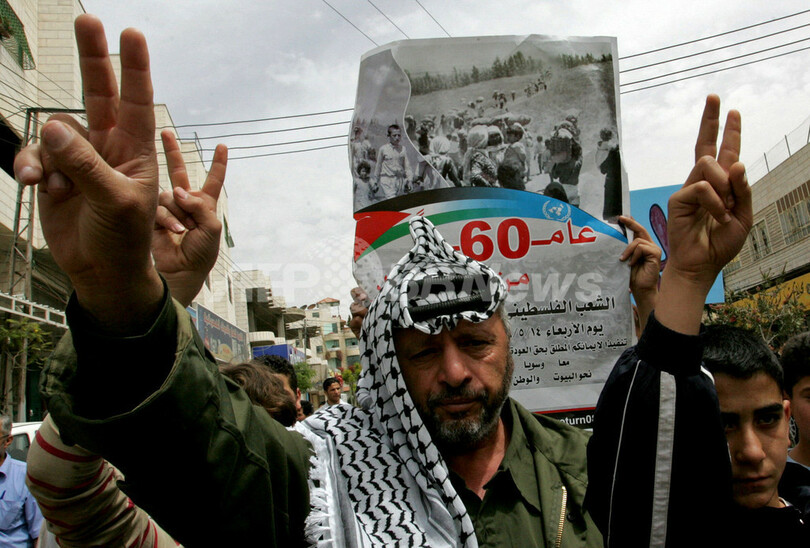 一方、イスラエル建国を「ナクバ(Naqba、大災厄)」と呼ぶパレスチナ人らは同日、記念行事を重苦しい雰囲気で行った。(c)AFP/Laurent Lozano