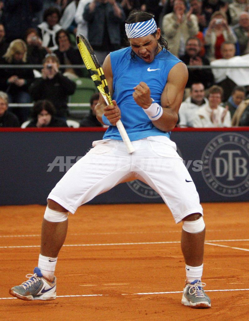 【5月18日 AFP】男子テニス、マスターズ・シリーズ・ハンブルク大会(Masters Series Hamburg 2008)シングルス準決勝。大会第2シードのラファエル・ナダル(Rafael Nadal、スペイン)は、大会第3シードのノバク・ジョコビッチ(Novak Djokovic、セルビア)と対戦。ナダルはセットカウント2-1(7-5、2-6、6-2)で勝利を収め、決勝戦へ進出を決めた。ナダルは決勝で大会第1シードのロジャー・フェデラー(Roger Federer、スイス)と対戦する。(c)AFP