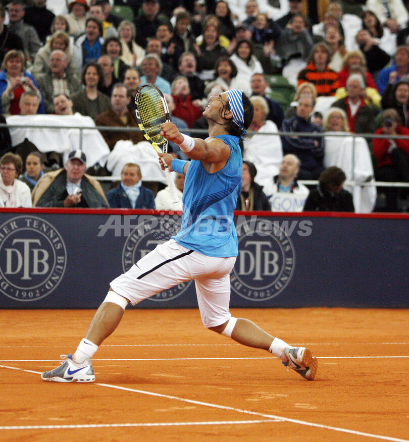 【5月18日 AFP】男子テニス、マスターズ・シリーズ・ハンブルク大会(Masters Series Hamburg 2008)シングルス準決勝。大会第2シードのラファエル・ナダル(Rafael Nadal、スペイン)は、大会第3シードのノバク・ジョコビッチ(Novak Djokovic、セルビア)と対戦。ナダルはセットカウント2-1(7-5、2-6、6-2)で勝利を収め、決勝戦へ進出を決めた。ナダルは決勝で大会第1シードのロジャー・フェデラー(Roger Federer、スイス)と対戦する。(c)AFP
