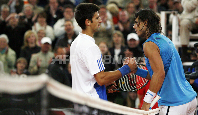 【5月18日 AFP】男子テニス、マスターズ・シリーズ・ハンブルク大会(Masters Series Hamburg 2008)シングルス準決勝。大会第2シードのラファエル・ナダル(Rafael Nadal、スペイン)は、大会第3シードのノバク・ジョコビッチ(Novak Djokovic、セルビア)と対戦。ナダルはセットカウント2-1(7-5、2-6、6-2)で勝利を収め、決勝戦へ進出を決めた。ナダルは決勝で大会第1シードのロジャー・フェデラー(Roger Federer、スイス)と対戦する。(c)AFP