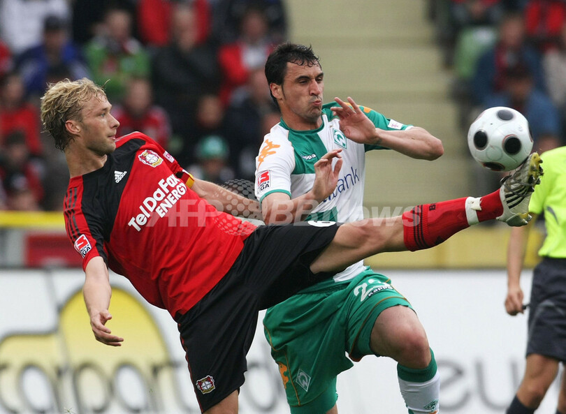 スポーツ サッカー ブレーメン 最終戦を飾り2位でシーズンを終える 2008年5月18日 10:25 発信地:レバークーゼン/ドイツ [ ヨーロッパ ドイツ ] このニュースをシェア ‹ › ❮ 3/4 ❯ レバークーゼンのシモン・ロルフェス(%%Simon Rolfes%%、左)と競り合うブレーメンのウーゴ・アルメイダ(%%Hugo Almeida%%)。(2008年5月17日撮影)(c)AFP/DDP/JUERGEN SCHWARZ 画像作成中 ! 【5月18日 AFP】07-08ドイツ・ブンデスリーガ1部・最終第34節、バイヤー・レバークーゼン(Bayer Leverkusen)vsヴェルダー・ブレーメン(Werder Bremen)。試合はブレーメンが1-0でレバークーゼンを下して最終戦を白星で飾り、2位でシーズンを終えた。(c)AFP サッカー 一覧へ> メディア・報道関係・法人の方向け 写真・動画 購入のお問合せ>