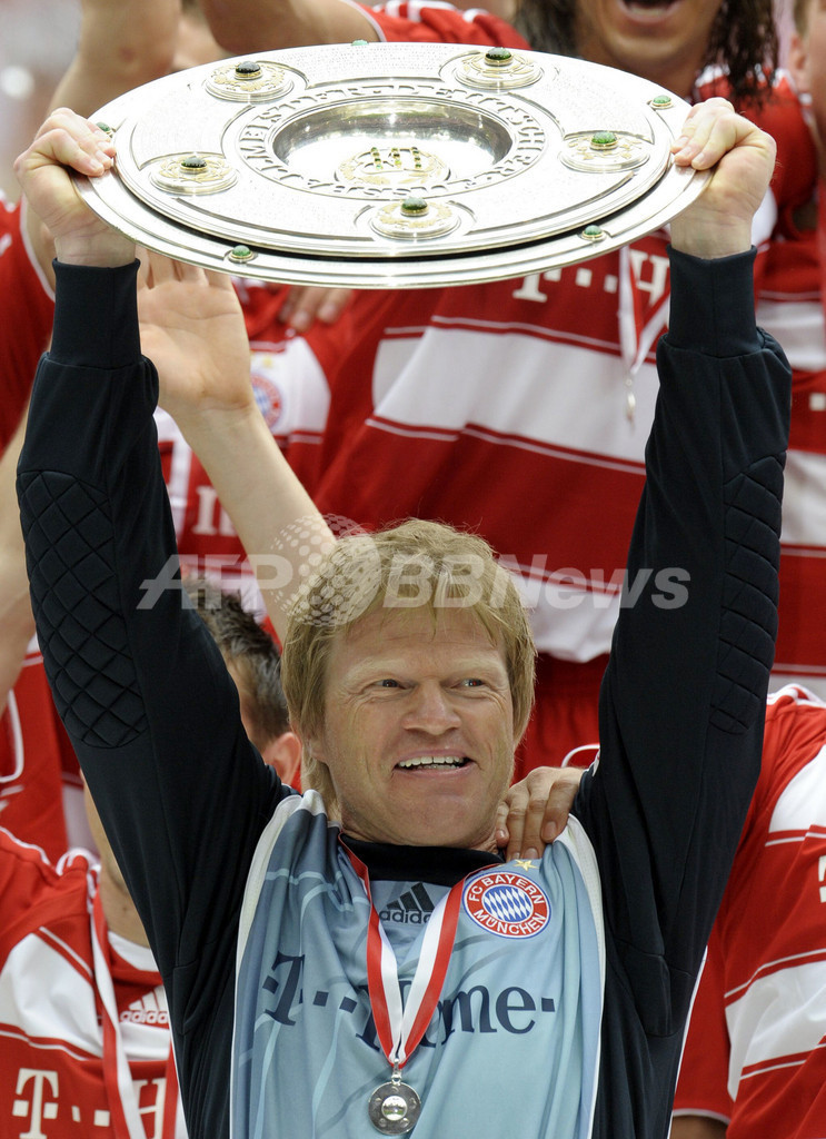 また、ヘルタの反撃を1点に抑えて自身の引退に花を添えたカーンは、試合後にバイエルンで過ごした14年間で8度獲得した優勝の皿「マイスターシャーレ」を掲げて現役生活に別れを告げた。(c)AFP