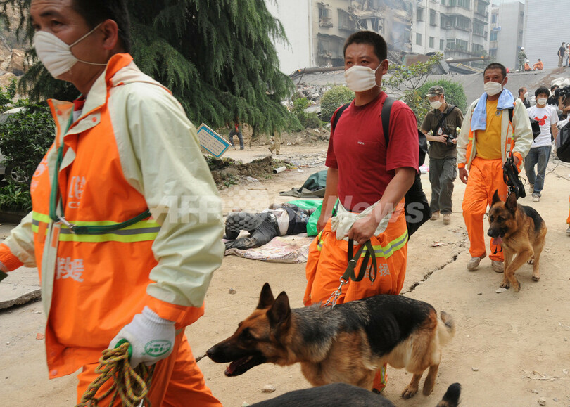 ニュース 社会 四川大地震、捜索犬を使った救助活動 2008年5月18日 20:31 発信地:北川/中国 [ 中国・台湾 中国 ] このニュースをシェア ‹ › ❮ 1/10 ❯ 四川(Sichuan)省北川(Beichuan)県で捜索犬を使い、生存者を探す救助隊(2008年5月17日撮影)。(c)AFP/Mark RALSTON 画像作成中 ! 【5月18日 AFP】大地震の被災地となった中国南西部の四川(Sichuan)省北川(Beichuan)県では、捜索犬を使った救助活動が続けられている。(c)AFP 社会 一覧へ> メディア・報道関係・法人の方向け 写真・動画 購入のお問合せ>
