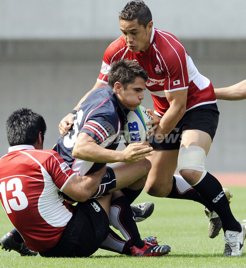 スポーツ ラグビー ラグビー日本代表 HSBCアジア5カ国対抗で初代王者に 2008年5月18日 21:40 発信地:新潟 [ アジア・オセアニア 新潟 ] このニュースをシェア ‹ › ❮ 5/9 ❯ 香港のロウアン・バーティ(%%Rowan Varty%%)を抑える日本の今村雄太(%%Yuta Imamura%%、左)とブライス・ロビンス(%%Bryce Robins%%、右)。(2008年5月18日撮影)(c)AFP/Kazuhiro NOGI 画像作成中 ! 【5月18日 AFP】(写真追加)ラグビー、HSBCアジア5カ国対抗2008(HSBC Asian Five Nations 2008)・第4節、日本対香港。試合は日本が75-29で勝利し、日本は開幕から4連勝を飾り大会初代王者に輝いた。(c)AFP ラグビー 一覧へ> メディア・報道関係・法人の方向け 写真・動画 購入のお問合せ>