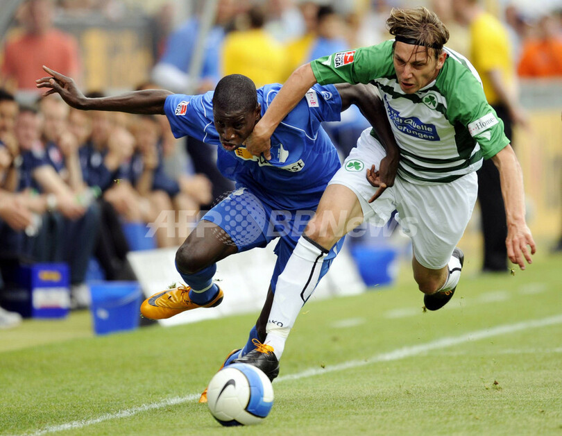 スポーツ サッカー ホッフェンハイム チーム史上初のブンデスリーガ1部昇格を決める 2008年5月19日 8:17 発信地:ホッフェンハイム/ドイツ [ ヨーロッパ ドイツ ] このニュースをシェア ‹ › ❮ 5/6 ❯ グロイター・フュルトのティモ・アヘンバッハ(%%Timo Achenbach%%、右)と競り合うホッフェンハイムのデンバ・バ(%%Demba Ba%%)。(2008年5月18日撮影)(c)AFP/DDP/THOMAS LOHNES 画像作成中 ! 【5月19日 AFP】サッカー、07-08ドイツ・ブンデスリーガ2部・最終第34節、1899ホッフェンハイム(1899 Hoffenheim)vsSpVggグロイター・フュルト(SpVgg Greuther Fuerth)。試合はホッフェンハイムが5-0でグロイター・フュルトを下して勝ち点を60とし、2位でチーム史上初となる1部昇格を果たした。(c)AFP サッカー 一覧へ> メディア・報道関係・法人の方向け 写真・動画 購入のお問合せ>