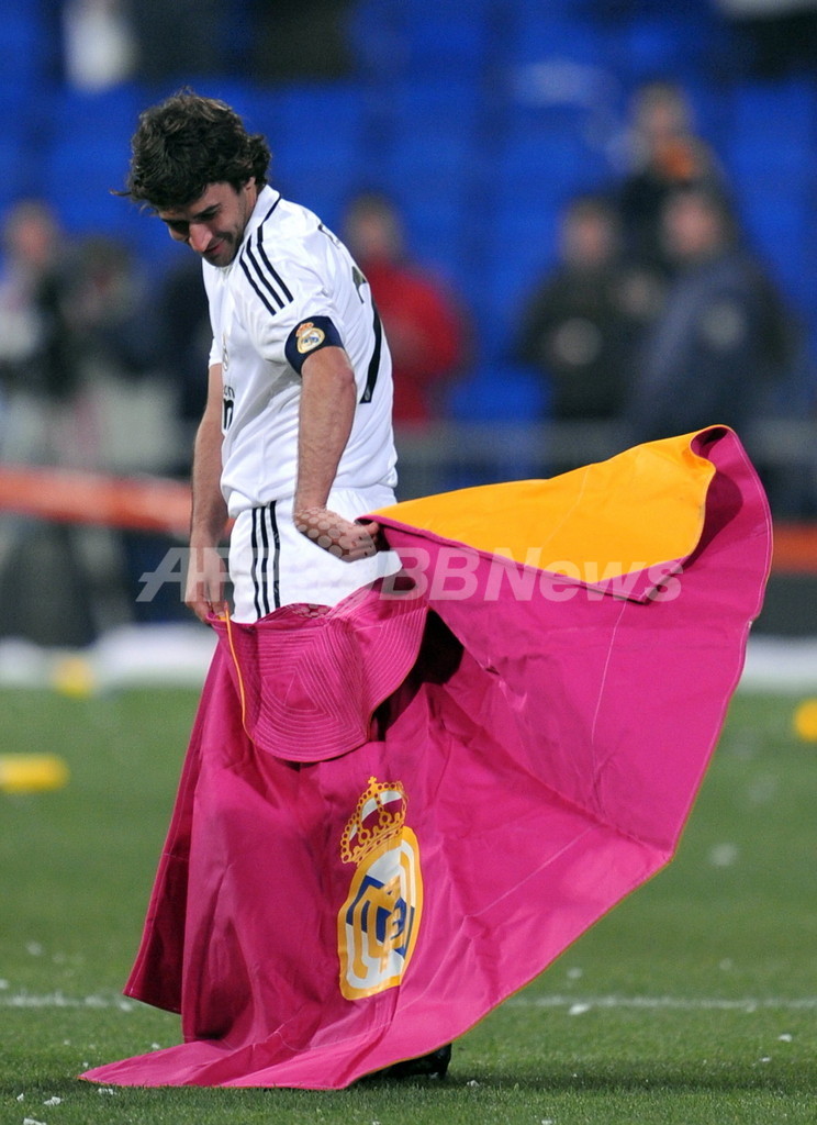 スポーツ サッカー レアル・マドリード 最終戦を白星で飾る 2008年5月19日 14:16 発信地:マドリード/スペイン [ ヨーロッパ スペイン ] このニュースをシェア ‹ › ❮ 14/16 ❯ 試合後に闘牛士のまねをするパフォーマンスを披露するレアル・マドリードのラウル・ゴンザレス(%%Raul Gonzalez%%)。(2008年5月18日撮影)(c)AFP/PHILIPPE DESMAZES 画像作成中 ! 【5月19日 AFP】(写真追加)07-08スペイン・リーガエスパニョーラ1部・最終第38節、レアル・マドリード(Real Madrid)vsレバンテ(Levante)。すでに2年連続通算31回目の優勝を決めているレアル・マドリードは5-2で勝利を収めて最終戦を白星で飾った。(c)AFP サッカー 一覧へ> メディア・報道関係・法人の方向け 写真・動画 購入のお問合せ>