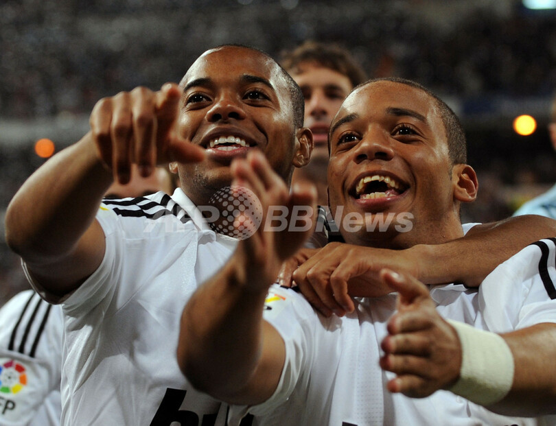 スポーツ サッカー レアル・マドリード 最終戦を白星で飾る 2008年5月19日 14:16 発信地:マドリード/スペイン [ ヨーロッパ スペイン ] このニュースをシェア ‹ › ❮ 4/16 ❯ 試合後の優勝セレモニーで喜びを表すレアル・マドリードのロビーニョ(%%Robinho%%、左)とマルセロ(%%Marcelo Vieira Da Silva Junior%%)。(2008年5月18日撮影)(c)AFP/PHILIPPE DESMAZES 画像作成中 ! 【5月19日 AFP】(写真追加)07-08スペイン・リーガエスパニョーラ1部・最終第38節、レアル・マドリード(Real Madrid)vsレバンテ(Levante)。すでに2年連続通算31回目の優勝を決めているレアル・マドリードは5-2で勝利を収めて最終戦を白星で飾った。(c)AFP サッカー 一覧へ> メディア・報道関係・法人の方向け 写真・動画 購入のお問合せ>