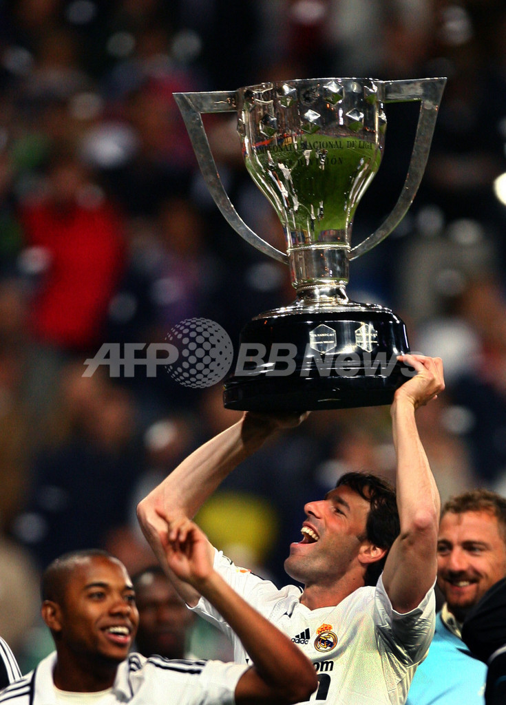 スポーツ サッカー レアル・マドリード 最終戦を白星で飾る 2008年5月19日 14:16 発信地:マドリード/スペイン [ ヨーロッパ スペイン ] このニュースをシェア ‹ › ❮ 2/16 ❯ 試合後の優勝セレモニーでトロフィーを掲げ歓喜するレアル・マドリードのルート・ファン・ニステルローイ(%%Ruud Van Nistelrooy%%、中央)。(2008年5月18日撮影)(c)AFP/PEDRO ARMESTRE 画像作成中 ! 【5月19日 AFP】(写真追加)07-08スペイン・リーガエスパニョーラ1部・最終第38節、レアル・マドリード(Real Madrid)vsレバンテ(Levante)。すでに2年連続通算31回目の優勝を決めているレアル・マドリードは5-2で勝利を収めて最終戦を白星で飾った。(c)AFP サッカー 一覧へ> メディア・報道関係・法人の方向け 写真・動画 購入のお問合せ>