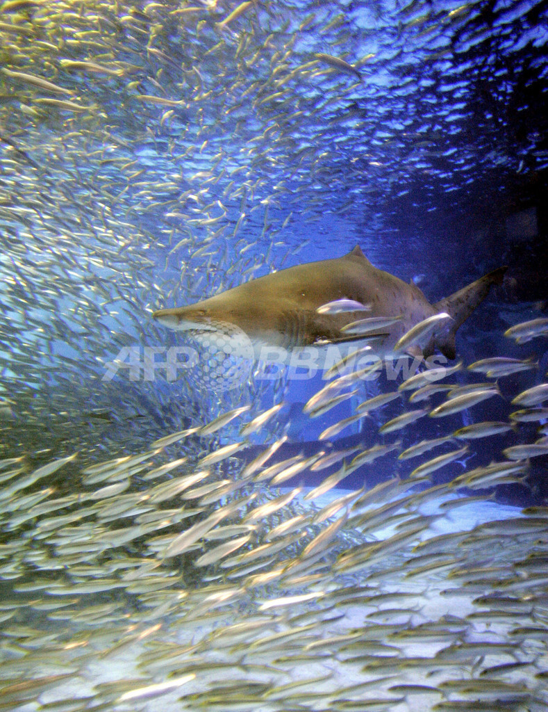 【5月19日 AFP】神奈川県横浜・八景島シーパラダイス(Yokohama Hakkeijima Sea Paradise)では、開館15周年を記念して、新パフォーマンス「イワシ・イリュージョン」が行われている。巨大ザメ、シロワニや約1万5000匹のイワシを集めたこのパフォーマンスは5月8日から7月18日まで行われる。(c)AFP