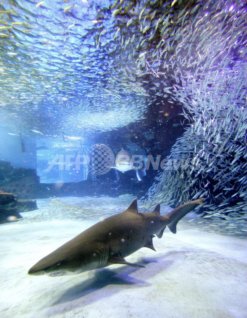 【5月19日 AFP】神奈川県横浜・八景島シーパラダイス(Yokohama Hakkeijima Sea Paradise)では、開館15周年を記念して、新パフォーマンス「イワシ・イリュージョン」が行われている。巨大ザメ、シロワニや約1万5000匹のイワシを集めたこのパフォーマンスは5月8日から7月18日まで行われる。(c)AFP