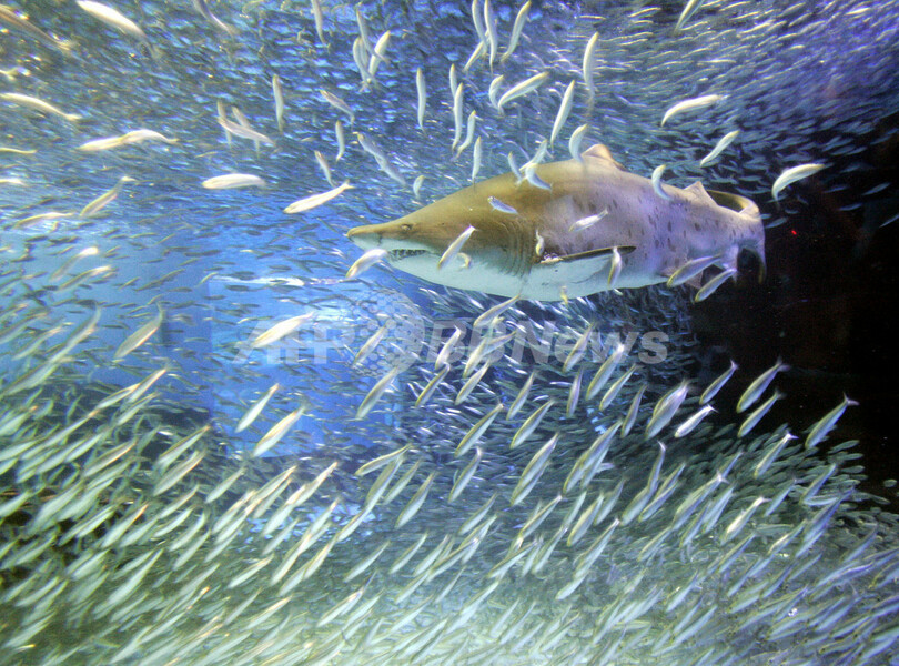 【5月19日 AFP】神奈川県横浜・八景島シーパラダイス(Yokohama Hakkeijima Sea Paradise)では、開館15周年を記念して、新パフォーマンス「イワシ・イリュージョン」が行われている。巨大ザメ、シロワニや約1万5000匹のイワシを集めたこのパフォーマンスは5月8日から7月18日まで行われる。(c)AFP