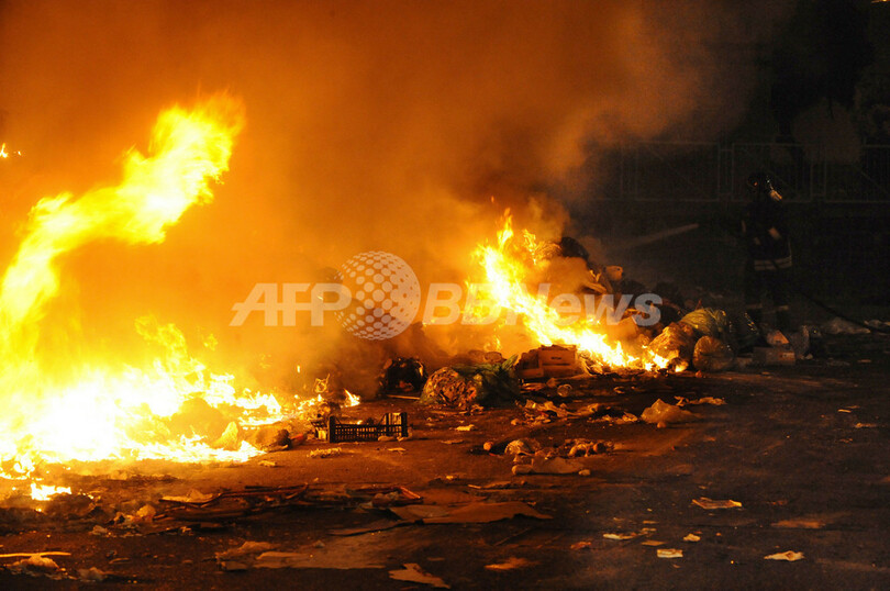 また別の市民らが悪臭を放つごみの山に放火する事件も発生。駆けつけた消防隊員らは、市民が投石するなか、警察官に守られながら消火作業を行った。