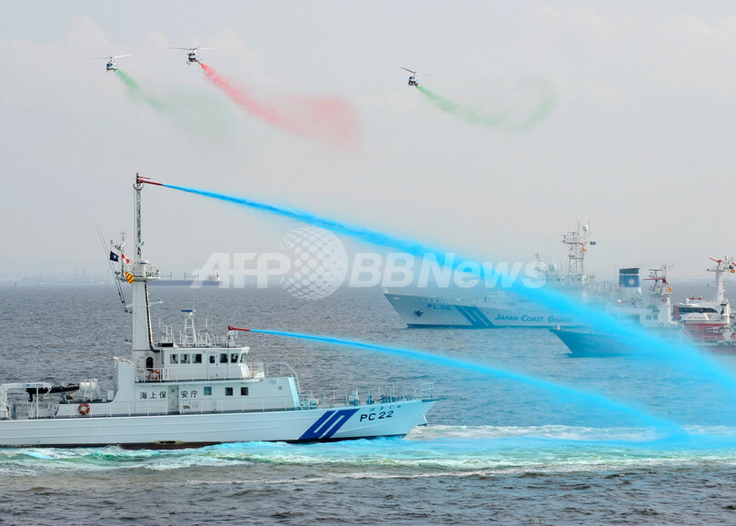 ニュース 政治・経済 海上保安庁、創設60周年記念の総合訓練 2008年5月19日 1:00 発信地:東京 [ アジア・オセアニア 東京 ] このニュースをシェア ‹ › ❮ 1/9 ❯ 東京湾沖で行われた海上保安庁の総合訓練に参加する消火船やヘリコプター(2008年5月18日撮影)。(c)AFP/Toru YAMANAKA 画像作成中 ! 【5月19日 AFP】東京湾沖で18日、海上保安庁の総合訓練が実施された。同庁は創設60周年を迎え、2日間の日程で行われた記念の訓練には巡視船など67隻と航空機18機が参加した。(c)AFP 政治・経済 一覧へ> メディア・報道関係・法人の方向け 写真・動画 購入のお問合せ>