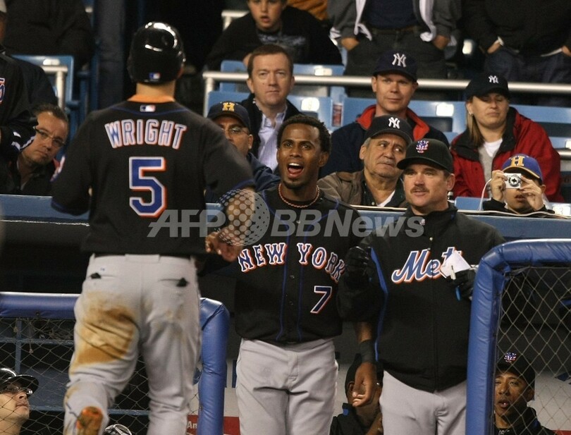 スポーツ 野球 メッツ ヤンキースとのサブウェーシリーズ2連勝 2008年5月19日 19:26 発信地:ニューヨーク/米国 [ 北米 米国 ] このニュースをシェア ‹ › ❮ 3/5 ❯ ニューヨーク・ヤンキース戦で本塁に生還したデビット・ライト(%%David Wright%%、左)を迎えるニューヨーク・メッツのホセ・レイエス(%%Jose Reyes%%、中央)。(2008年5月18日撮影)(c)AFP/Getty Images/Al Bello 画像作成中 ! 【5月19日 AFP】08MLB、ニューヨーク・ヤンキース(New York Yankees)vsニューヨーク・メッツ(New York Mets)。試合はメッツが11-2で勝利を収め、サブウェーシリーズ2連勝を飾った。(c)AFP/Getty Images 野球 一覧へ> メディア・報道関係・法人の方向け 写真・動画 購入のお問合せ>