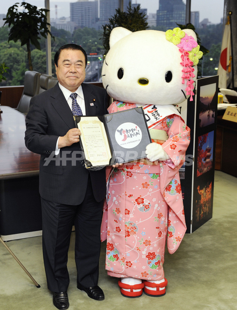 ニュース ライフ キティちゃん、中国と香港での観光親善大使に 2008年5月20日 12:19 発信地:東京 [ アジア・オセアニア 東京 ] このニュースをシェア ‹ › ❮ 1/6 ❯ 都内で行われた観光親善大使の任命式で写真撮影に臨む、冬柴鐵三国土交通大臣(左)と、観光親善大使に任命された「ハローキティ(Hello Kitty)」(2008年5月19日撮影)。(c)AFP/Kazuhiro NOGI 画像作成中 ! 【5月20日 AFP】国土交通省は19日、中国と香港での観光親善大使に人気キャラクター「ハローキティ(Hello Kitty)」を任命した。外国人観光客数の増加が狙い。任命式は冬柴鐵三国土交通大臣によって行われた。(c)AFP ライフ 一覧へ> メディア・報道関係・法人の方向け 写真・動画 購入のお問合せ>
