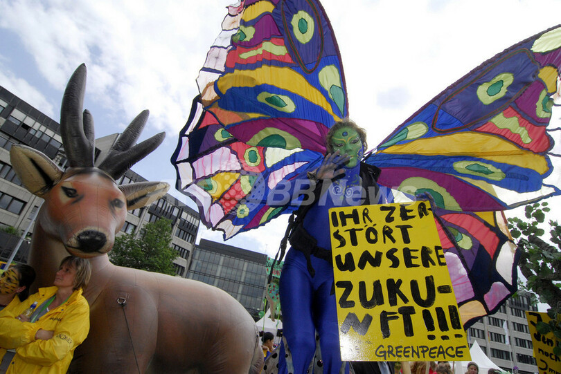 ニュース 環境・科学 こぼれ話 「地球にもバランスを」、環境問題国際会議で綱渡りの曲芸披露 2008年5月20日 12:57 発信地:ボン/ドイツ [ ヨーロッパ ドイツ ] このニュースをシェア ‹ › ❮ 2/9 ❯ ドイツのボン(Bonn)で開催された生物多様性条約(Convention of Biological Diversity)会議の開会式で、カラフルな動物に模した衣装を着て抗議活動を行う環境保護団体「Greenpeace Kids」のメンバーら(2008年5月19日撮影)。(c)AFP/DDP/HENNING KAISER 画像作成中 ! 【5月20日 AFP】ドイツのボン(Bonn)にて19日に行われた国連の生物多様性条約に関する会議の開会式で、綱渡りのパフォーマンスを行う曲芸師ら。掲げた横断幕には「代表者の皆さん、地球にバランスを」と書かれている。今年で9回目となる会議の主要テーマは、気候変動を引き起こす二酸化炭素排出の大きな要因である森林破壊となっている。(c)AFP 環境・科学 一覧へ> メディア・報道関係・法人の方向け 写真・動画 購入のお問合せ>