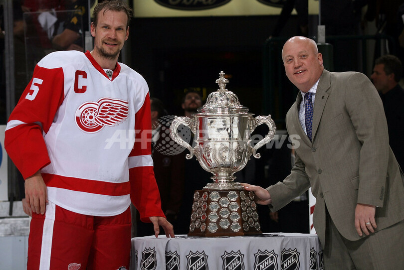 スポーツ ウインタースポーツ レッドウィングス 西カンファレンスを制しスタンレー杯進出 2008年5月20日 14:43 発信地:ダラス/米国 [ 北米 米国 ] このニュースをシェア ‹ › ❮ 1/14 ❯ NHLのビル・デイリー(%%Bill Daly%%)コミッショナー代理と共に西カンファレンス王者に与えられるクラレンス・キャンベル・ボウル(%%Clarence S. Campbell Bowl%%)の前でポーズをとるレッドウィングスのニクラス・リドストロム(%%Nicklas Lidstrom%%、左)。(2008年5月19日撮影)(c)AFP/Getty Images/Ronald Martinez 画像作成中 ! 【5月20日 AFP】07-08NHL、西カンファレンス・プレーオフ決勝、ダラス・スターズ(Dallas Stars)vsデトロイト・レッドウィングス(Detroit Red Wings)第6戦。試合はレッドウィングスが4-1でスターズを下し、レッドウィングスは通算成績4勝2敗でスタンレー杯(Stanley Cup 2008)へ進出を決めた。(c)AFP/Getty Images ウインタースポーツ 一覧へ> メディア・報道関係・法人の方向け 写真・動画 購入のお問合せ>