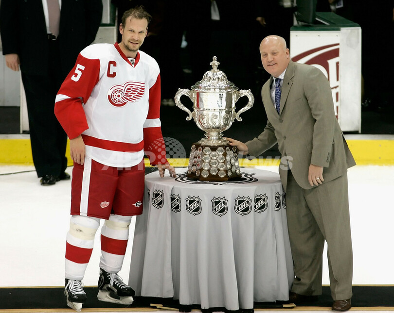 スポーツ ウインタースポーツ レッドウィングス 西カンファレンスを制しスタンレー杯進出 2008年5月20日 14:43 発信地:ダラス/米国 [ 北米 米国 ] このニュースをシェア ‹ › ❮ 6/14 ❯ NHLのビル・デイリー(%%Bill Daly%%)コミッショナー代理と共に西カンファレンス王者に与えられるクラレンス・キャンベル・ボウル(%%Clarence S. Campbell Bowl%%)の前でポーズをとるレッドウィングスのニクラス・リドストロム(%%Nicklas Lidstrom%%、左)。(2008年5月19日撮影)(c)AFP/Getty Images/Christian Petersen 画像作成中 ! 【5月20日 AFP】07-08NHL、西カンファレンス・プレーオフ決勝、ダラス・スターズ(Dallas Stars)vsデトロイト・レッドウィングス(Detroit Red Wings)第6戦。試合はレッドウィングスが4-1でスターズを下し、レッドウィングスは通算成績4勝2敗でスタンレー杯(Stanley Cup 2008)へ進出を決めた。(c)AFP/Getty Images ウインタースポーツ 一覧へ> メディア・報道関係・法人の方向け 写真・動画 購入のお問合せ>