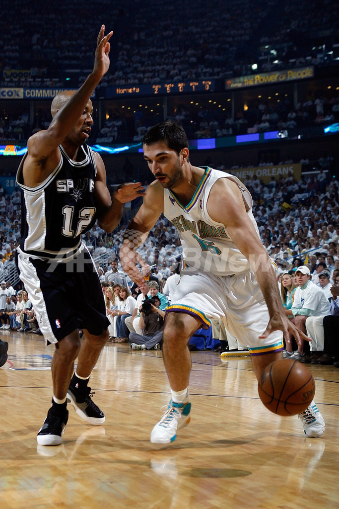 【5月20日 AFP】07-08NBA、西カンファレンス・プレーオフ準決勝、ニューオーリンズ・ホーネッツ(New Orleans Hornets)vsサンアントニオ・スパーズ(San Antonio Spurs)第7戦。試合はスパーズが91-82で勝利を収め、スパーズが西カンファレンス決勝へ進出を決めた。