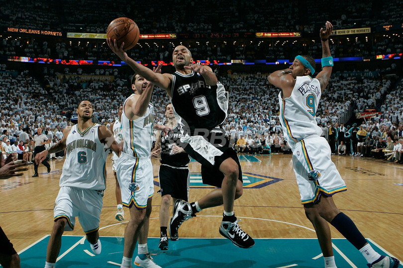 【5月20日 AFP】07-08NBA、西カンファレンス・プレーオフ準決勝、ニューオーリンズ・ホーネッツ(New Orleans Hornets)vsサンアントニオ・スパーズ(San Antonio Spurs)第7戦。試合はスパーズが91-82で勝利を収め、スパーズが西カンファレンス決勝へ進出を決めた。