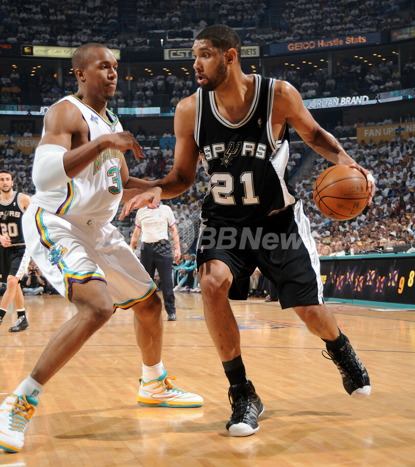 【5月20日 AFP】07-08NBA、西カンファレンス・プレーオフ準決勝、ニューオーリンズ・ホーネッツ(New Orleans Hornets)vsサンアントニオ・スパーズ(San Antonio Spurs)第7戦。試合はスパーズが91-82で勝利を収め、スパーズが西カンファレンス決勝へ進出を決めた。