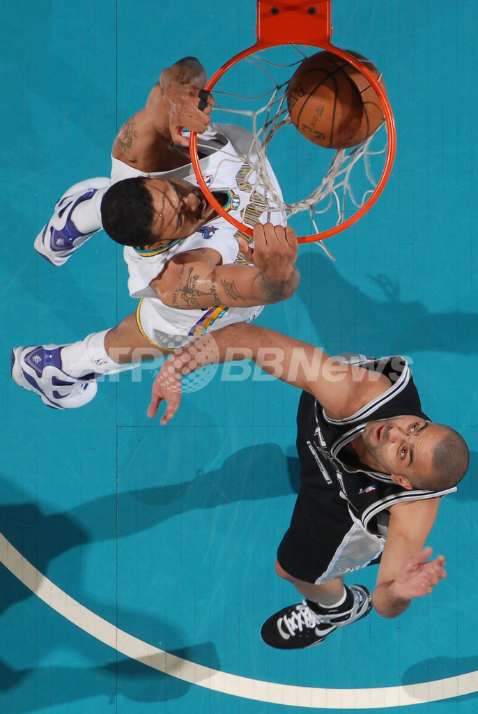 【5月20日 AFP】07-08NBA、西カンファレンス・プレーオフ準決勝、ニューオーリンズ・ホーネッツ(New Orleans Hornets)vsサンアントニオ・スパーズ(San Antonio Spurs)第7戦。試合はスパーズが91-82で勝利を収め、スパーズが西カンファレンス決勝へ進出を決めた。