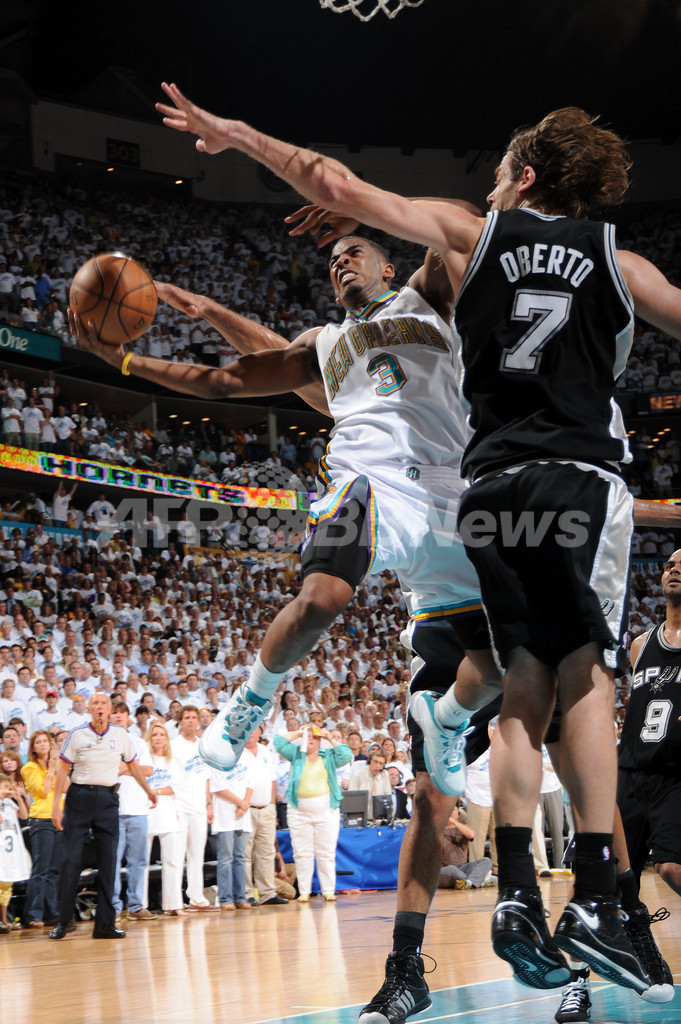 【5月20日 AFP】07-08NBA、西カンファレンス・プレーオフ準決勝、ニューオーリンズ・ホーネッツ(New Orleans Hornets)vsサンアントニオ・スパーズ(San Antonio Spurs)第7戦。試合はスパーズが91-82で勝利を収め、スパーズが西カンファレンス決勝へ進出を決めた。