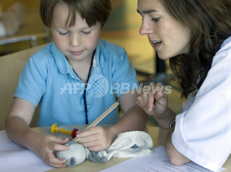 【5月22日 AFP】オランダのユトレヒト(Utrecht)にあるウィルヘルミナ小児病院(Wilhelmina Childrens' Hospital)内に、ぬいぐるみの専門病院「テディベア・ホスピタル(Teddybear Hospital)が登場した。この病院は、子供たちに病院での医療活動を理解してもらい、病気を「怖い」と思う気持ちを少しでも減らすことを目的に開設されたもの。ぬいぐるみの「治療」は医学生らが担当する。(c)AFP