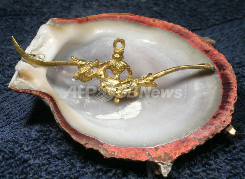 考古学者によると、長さ約8センチのこの道具は385年以上前に作られ、当時は恐らく金の鎖がついていた。推定価格は10万ドル(1000万円)以上。(c)AFP