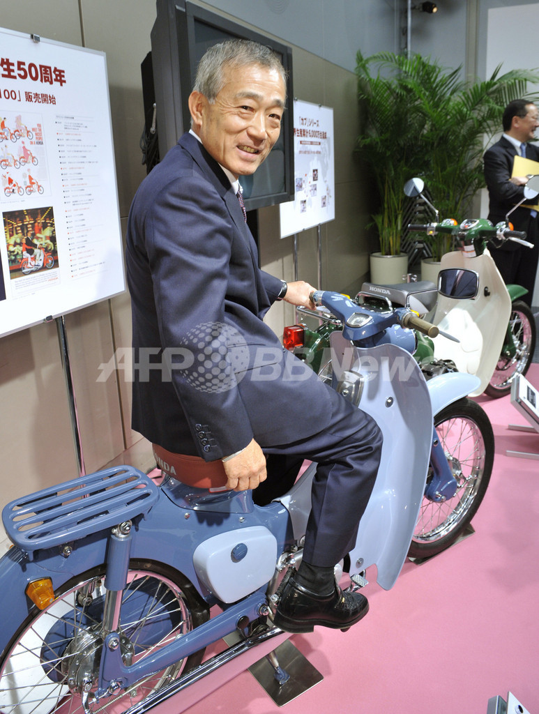 ニュース 政治・経済 ホンダの「スーパーカブ」、生産累計6000万台達成 2008年5月21日 18:59 発信地:東京 [ アジア・オセアニア 東京 ] このニュースをシェア ‹ › ❮ 4/5 ❯ 都内のホンダ(Honda Motor)本社で、記者会見を終えて初代スーパーカブに乗る福井威夫(Takeo Fukui)社長(2008年5月21日撮影)。(c)AFP/Yoshikazu TSUNO 画像作成中 ! 【5月21日 AFP】ホンダ(Honda Motor)の福井威夫(Takeo Fukui)社長は21日、都内のホンダ本社で記者会見を行い、二輪車スーパーカブ(Super Cub)シリーズが4月末で世界生産累計6000万台となったと発表した。また2009年に「新型ハイブリッド専用車」を発売し、全世界で年間20万台の販売を目指すとした。(c)AFP 政治・経済 一覧へ> メディア・報道関係・法人の方向け 写真・動画 購入のお問合せ>