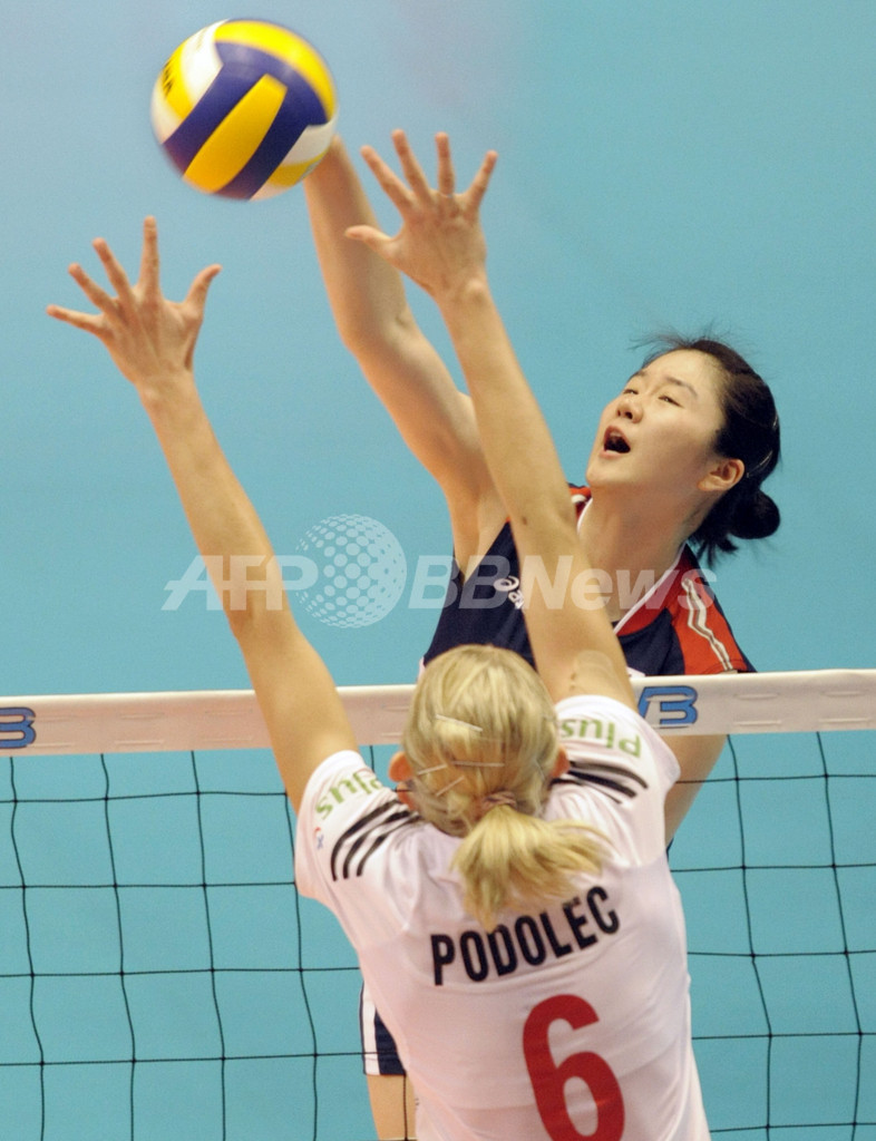 スポーツ スポーツ その他 ポーランド 韓国をストレートで下し3勝目 2008年5月21日 23:18 発信地:東京 [ アジア・オセアニア 東京 ] このニュースをシェア ‹ › ❮ 4/8 ❯ ポーランドのアンナ・ポドレッツ(%%Anna Podolec%%)のブロックに対しスパイクを打つ韓国のキム・ミンジ(%%Kim Min-Ji%%)。(2008年5月21日撮影)(c)AFP/TOSHIFUMI KITAMURA 画像作成中 ! 【5月21日 AFP】北京五輪バレーボール世界最終予選(FIVB World Olympic Qualification Tournament)女子大会、韓国vsポーランド。試合はポーランドがセットカウント3-0(25-16、25-19、25-16)のストレートで韓国を下し、通算成績を3勝1敗とした。(c)AFP スポーツ その他 一覧へ> メディア・報道関係・法人の方向け 写真・動画 購入のお問合せ>