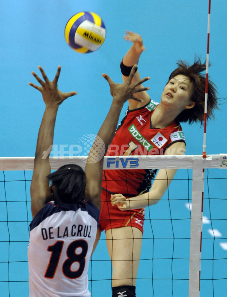 スポーツ スポーツ その他 日本人選手 日本 ドミニカ共和国を下し4連勝 2008年5月21日 23:36 発信地:東京 [ アジア・オセアニア 東京 ] このニュースをシェア ‹ › ❮ 11/11 ❯ ドミニカ共和国のベタニア・デラクルス(%%Bethania De La Cruz de Pena%%)のブロックに対しスパイクを打つ日本の栗原恵(%%Megumi Kurihara%%)。(2008年5月21日撮影)(c)AFP/TOSHIFUMI KITAMURA 画像作成中 ! 【5月21日 AFP】北京五輪バレーボール世界最終予選(FIVB World Olympic Qualification Tournament)女子大会、日本対ドミニカ共和国。試合は日本がセットカウント3-1(25-21、18-25、25-16、25-21)でドミニカ共和国を下し、4連勝を飾った。(c)AFP スポーツ その他 一覧へ> メディア・報道関係・法人の方向け 写真・動画 購入のお問合せ>