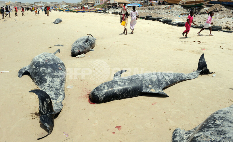 セネガルでクジラ81頭が打ち上げられる、33頭死亡