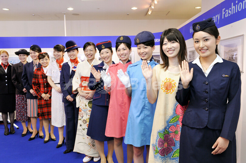 【5月22日 AFP】英航空大手ブリティッシュ・エアウェイズ(British Airways)は21日、日本就航60周年を記念して客室乗務員の歴代ユニホームのファッションショーを都内で開いた。