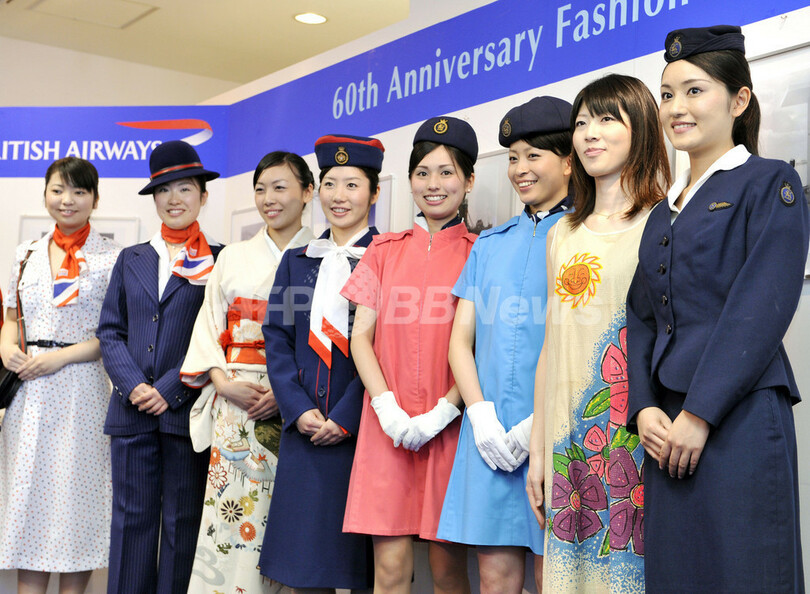 【5月22日 AFP】英航空大手ブリティッシュ・エアウェイズ(British Airways)は21日、日本就航60周年を記念して客室乗務員の歴代ユニホームのファッションショーを都内で開いた。