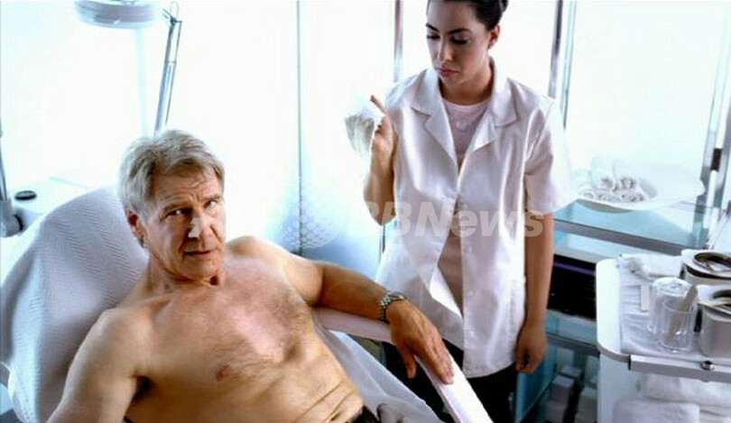 ちなみにセリグマン会長が語ってくれた撮影現場の裏話によると、俳優のフォードが胸毛を剃った瞬間のしかめっ面は演技ではなかったという。(c)AFP