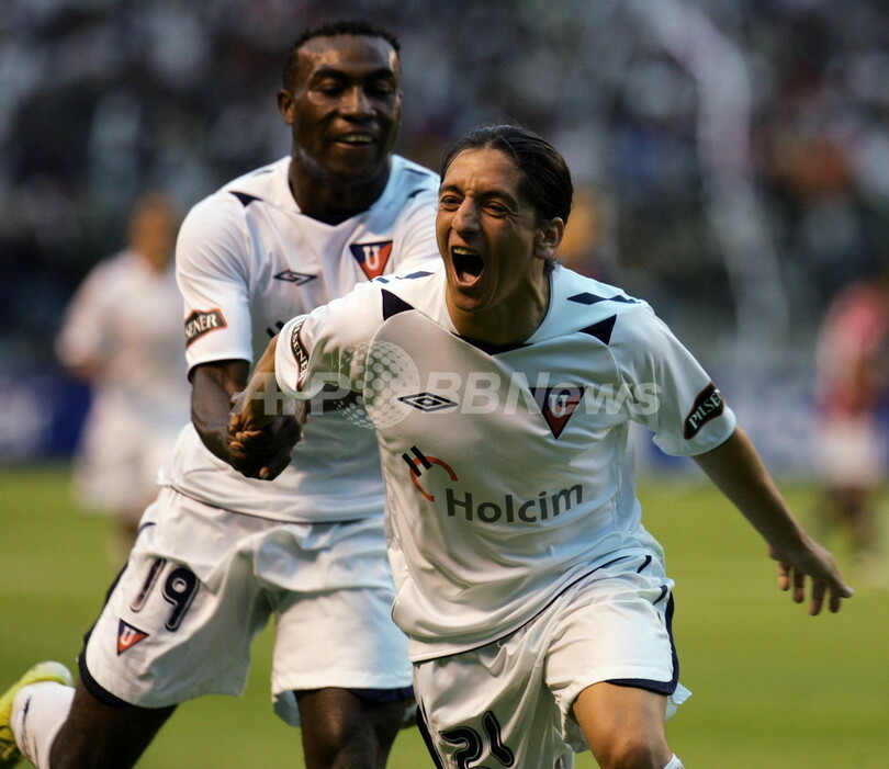 スポーツ サッカー リーガ・デ・キト PK戦の末サン・ロレンソを下し準決勝へ 2008年5月23日 13:28 発信地:キト/エクアドル [ 中南米 エクアドル ] このニュースをシェア ‹ › ❮ 1/4 ❯ 前半26分に先制点を決めて歓喜するリーガ・デ・キトのダミアン・マンソ(%%Damian Manso%%、中央)とホフレ・ゲロン(%%Joffre Guerron%%)。(2008年5月22日撮影)(c)AFP/Pablo COZZAGLIO 画像作成中 ! 【5月23日 AFP】サッカー、リベルタドーレス杯2008(Copa Libertadores de America 2008)準々決勝、リーガ・デ・キト(LDU Quito、エクアドル)vsサン・ロレンソ(San Lorenzo、アルゼンチン)、第2戦。試合は第1戦に続いて1-1の引き分けに終わり、2試合合計2-2で迎えたPK戦の末リーガ・デ・キトが5-3で勝利し、準決勝進出を決めた。(c)AFP サッカー 一覧へ> メディア・報道関係・法人の方向け 写真・動画 購入のお問合せ>