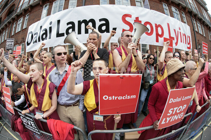 大主教公邸前には親中国派やダライ・ラマに批判的な仏教団体「ウェスタン・シュグデン・ソサエティ(Western Shugden Society)」のメンバーなどが小規模なデモを行った。