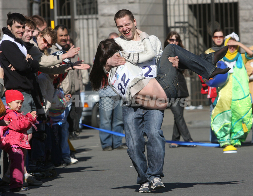 ニュース ライフ こぼれ話 「奥様運び大会」、サンクトペテルブルクで開催 2008年5月25日 5:39 発信地:サンクトペテルブルク/ロシア [ ロシア・CIS ロシア ] このニュースをシェア ‹ › ❮ 1/2 ❯ ロシアのサンクトペテルブルク(St. Petersburg)で、「奥様運び大会」に出場するカップル(2008年5月24日撮影)。(c)AFP/KIRILL KUDRJAVTSEV 画像作成中 ! 【5月25日 AFP】ロシアのサンクトペテルブルク(St. Petersburg、旧レニングラード)で24日、市制305周年を記念して「奥様運び大会」が行われた。(c)AFP ライフ 一覧へ> メディア・報道関係・法人の方向け 写真・動画 購入のお問合せ>