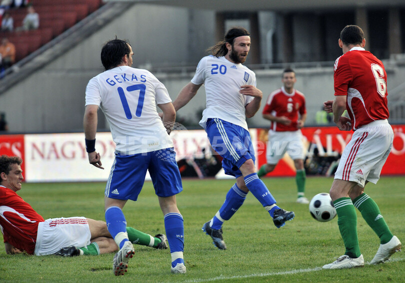【5月25日 AFP】サッカー国際親善試合。ハンガリーvsギリシャ。試合はスイスが2-3でハンガリーに敗れた。ギリシャは前半ロスタイムにイオアニス・アマナティディス(Ioannis Amanatidis)のゴールで先制したが、後半3分にバラージュ・ジュジャーク(Balazs Dzsudzsak)のゴールを奪われてハンガリーに同点に追いつかれた。その後ギリシャは同18分にはロランド・ユハス(Roland Juhasz)に、また同23分にはクリスティアン・ヴァドツ(Krisztian Vadocz)にゴールを奪われ約4分間で2失点を喫した。(c)AFP