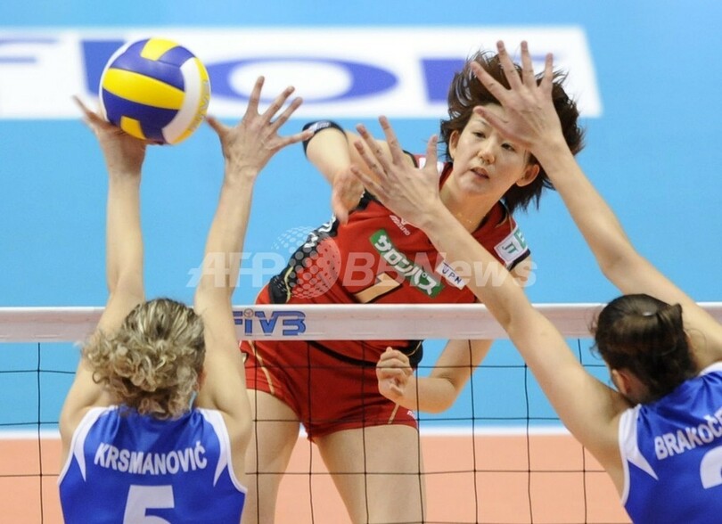 スポーツ スポーツ その他 日本 セルビアに敗れ3位に終わる 2008年5月25日 23:08 発信地:東京 [ アジア・オセアニア 東京 ] このニュースをシェア ‹ › ❮ 7/7 ❯ セルビアのナタサ・クルスマノビッチ(%%Natasa Krsmanovic%%、左)とヨバナ・ブラコチェビッチ(%%Jovana Brakocevic%%、右)の2枚ブロックに対しスパイクを打つ日本の栗原恵(%%Megumi Kurihara%%)。(2008年5月25日撮影)(c)AFP/Kazuhiro NOGI 画像作成中 ! 【5月25日 AFP】北京五輪バレーボール世界最終予選(FIVB World Olympic Qualification Tournament)女子大会、日本対セルビア。日本はセットカウント2-3(25-19、25-21、19-25、19-25、17-19)のフルセットの末にセルビアに敗れ、通算成績を6勝1敗とし得点率の差で3位に終わった。(c)AFP スポーツ その他 一覧へ> メディア・報道関係・法人の方向け 写真・動画 購入のお問合せ>