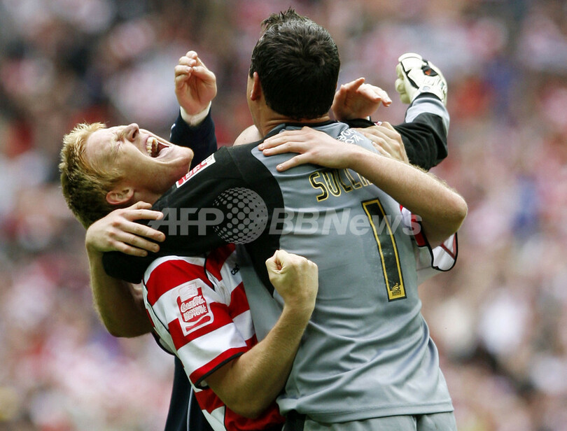 スポーツ サッカー ドンカスター・ローヴァーズ 51年ぶりの2部リーグ昇格を決める 2008年5月26日 10:57 発信地:ロンドン/英国 [ ヨーロッパ 英国 ] このニュースをシェア ‹ › ❮ 1/7 ❯ チャンピオンシップ・リーグ昇格を決め歓喜するドンカスター・ローヴァーズのアダム・ロックウッド(%%Adam Lockwood%%、左)とGKニール・サリバン(%%Neil Sullivan%%)。(2008年5月25日撮影)(c)AFP/Adrian Dennis 画像作成中 ! 【5月26日 AFP】サッカー、イングランド・フットボールリーグ1(3部)・プレイオフ決勝。ドンカスター・ローヴァーズ(Doncaster Rovers)vsリーズ・ユナイテッド(Leeds United)。試合はドンカスター・ローヴァーズが1-0でリーズ・ユナイテッドを下した。ドンカスター・ローヴァーズは、この勝利で51年ぶりのチャンピオンシップ・リーグ(2部)昇格を決めた。(c)AFP サッカー 一覧へ> メディア・報道関係・法人の方向け 写真・動画 購入のお問合せ>