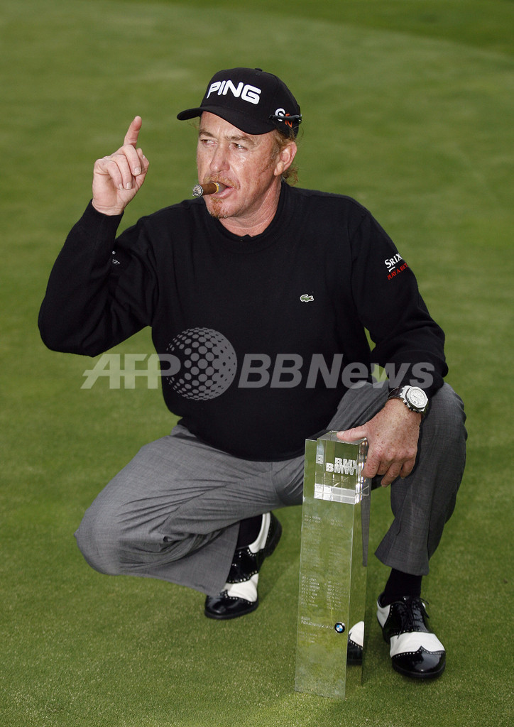 【5月26日 AFP】男子ゴルフ、欧州ツアー第24戦、BMW・PGA選手権2008(BMW PGA Championship 2008)、最終日。7アンダーの2位タイからスタートしたスペインのミゲル・アンヘル・ヒメネス(Miguel Angel Jimenez)は、5番ホールでホールインワンを記録するなど1イーグル、4バーディー、2ボギーでスコアを11アンダーとし、同スコアで並んだ英国のオリバー・ウィルソン(Oliver Wilson)とのプレーオフを制し優勝を果たした。
