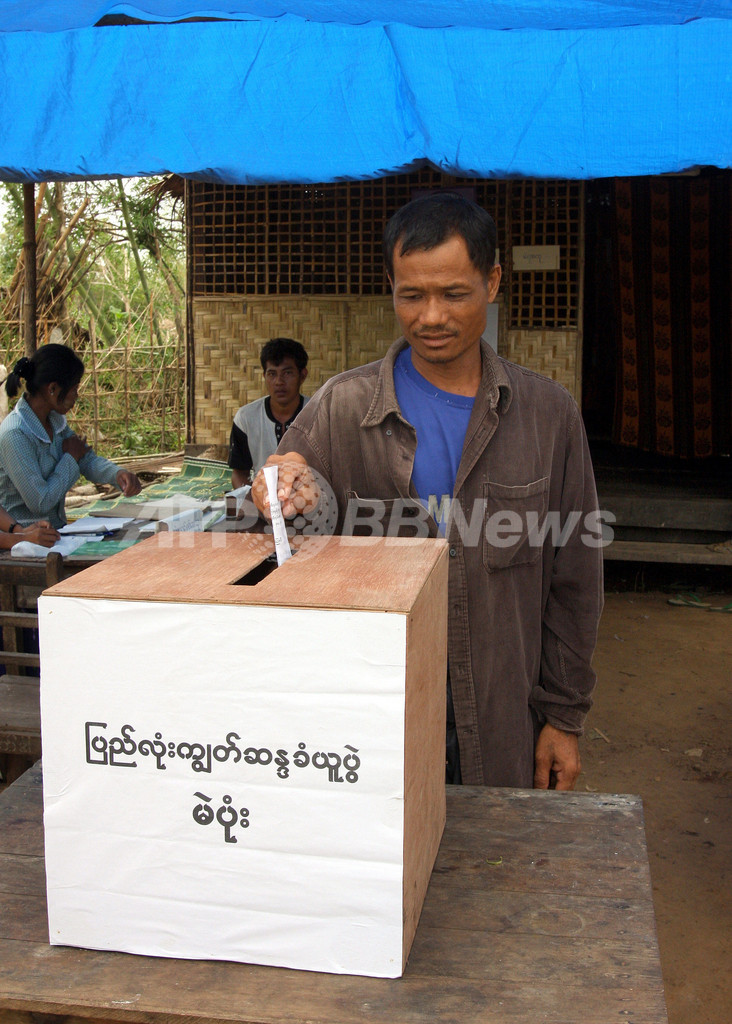13万3000人が死亡・行方不明となったサイクロンから3週間が経過した被災地域では24日、240万人がいまだ援助食糧、避難所、医薬品が必要とされるなか、投票が実施された。被災地域の有権者は約450万人。国営通信によると有権者の93%が投票し、うち92.93%が賛成した。