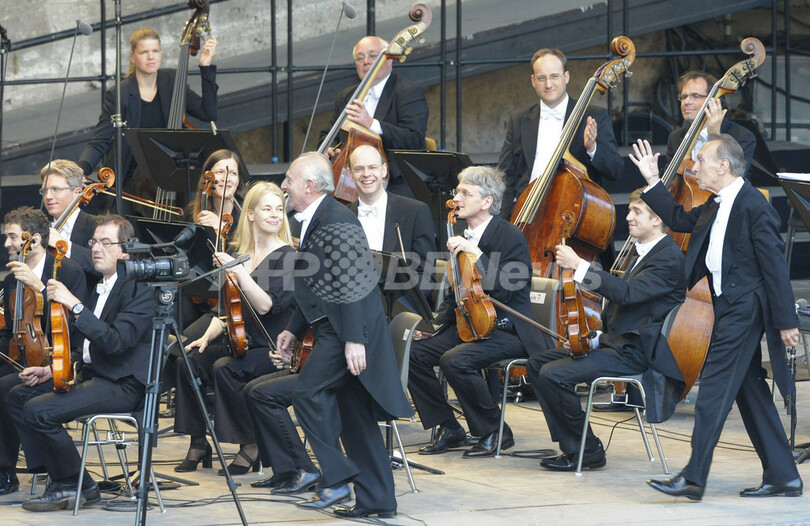 ベルリン(Berlin)の野外ステージ、ヴァルトビューネ(Waldbuehne)で行われた同コンサートには、フィルハーモニーの消火にあたった消防士らも招待された。(c)AFP/DDP