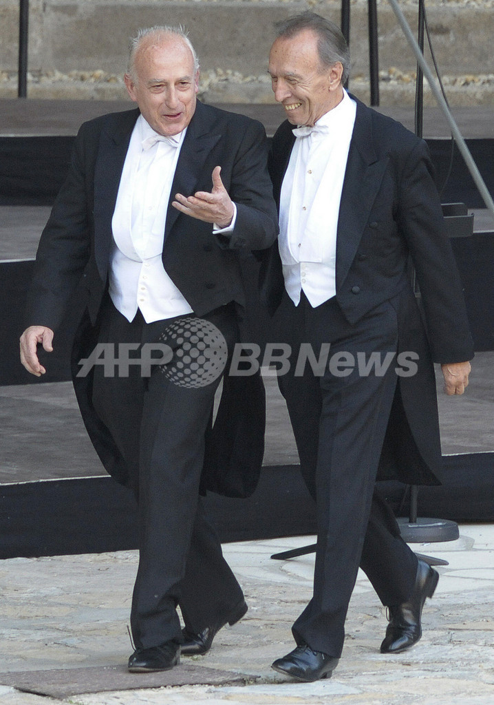 ベルリン(Berlin)の野外ステージ、ヴァルトビューネ(Waldbuehne)で行われた同コンサートには、フィルハーモニーの消火にあたった消防士らも招待された。(c)AFP/DDP