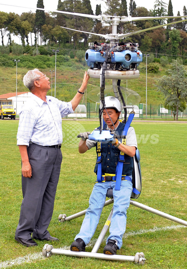 ニュース 環境・科学 こぼれ話 世界最小1人乗り日本製ヘリ、ダビンチ故郷の空を舞う 2008年5月27日 10:35 発信地:ヴィンチ/イタリア [ ヨーロッパ イタリア ] このニュースをシェア ‹ › ❮ 7/7 ❯ イタリア・ヴィンチ(Vinci)で日本人技術者の柳沢源内(Gennai Yanagisawa)さんが開発した「世界最小有人ヘリ」のデモ飛行を行う日本人パイロット(右)と柳沢さん(2008年5月25日撮影)。(c)AFP/TIZIANA FABI 画像作成中 ! 【5月27日 AFP】日本人技術者の柳沢源内(Gennai Yanagisawa)さんが開発した世界最小の有人ヘリコプターが25日、レオナルド・ダ・ビンチ(Leonardo da Vinci)の故郷、イタリアのヴィンチ(Vinci)の大空を舞った。このデモ飛行を行ったのは日本人のパイロット。(c)AFP 環境・科学 一覧へ> メディア・報道関係・法人の方向け 写真・動画 購入のお問合せ>