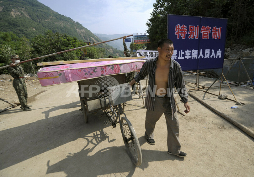 新華社によると、この余震で四川省青川(Qingchuan)県では家屋42万戸が倒壊し、63人が負傷、うち6人は重体だという。(c)AFP/Lynne O'Donnell