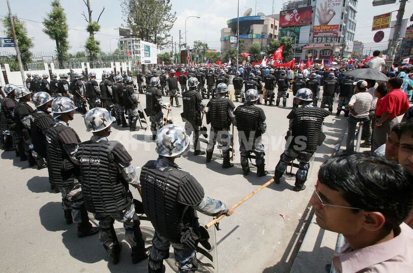 制憲議会周囲には、数千人の国王反対派がおしかけており、道路を埋め尽くした人々は「盗っ人ギャネンドラは国を去れ」などのスローガンを連呼している。